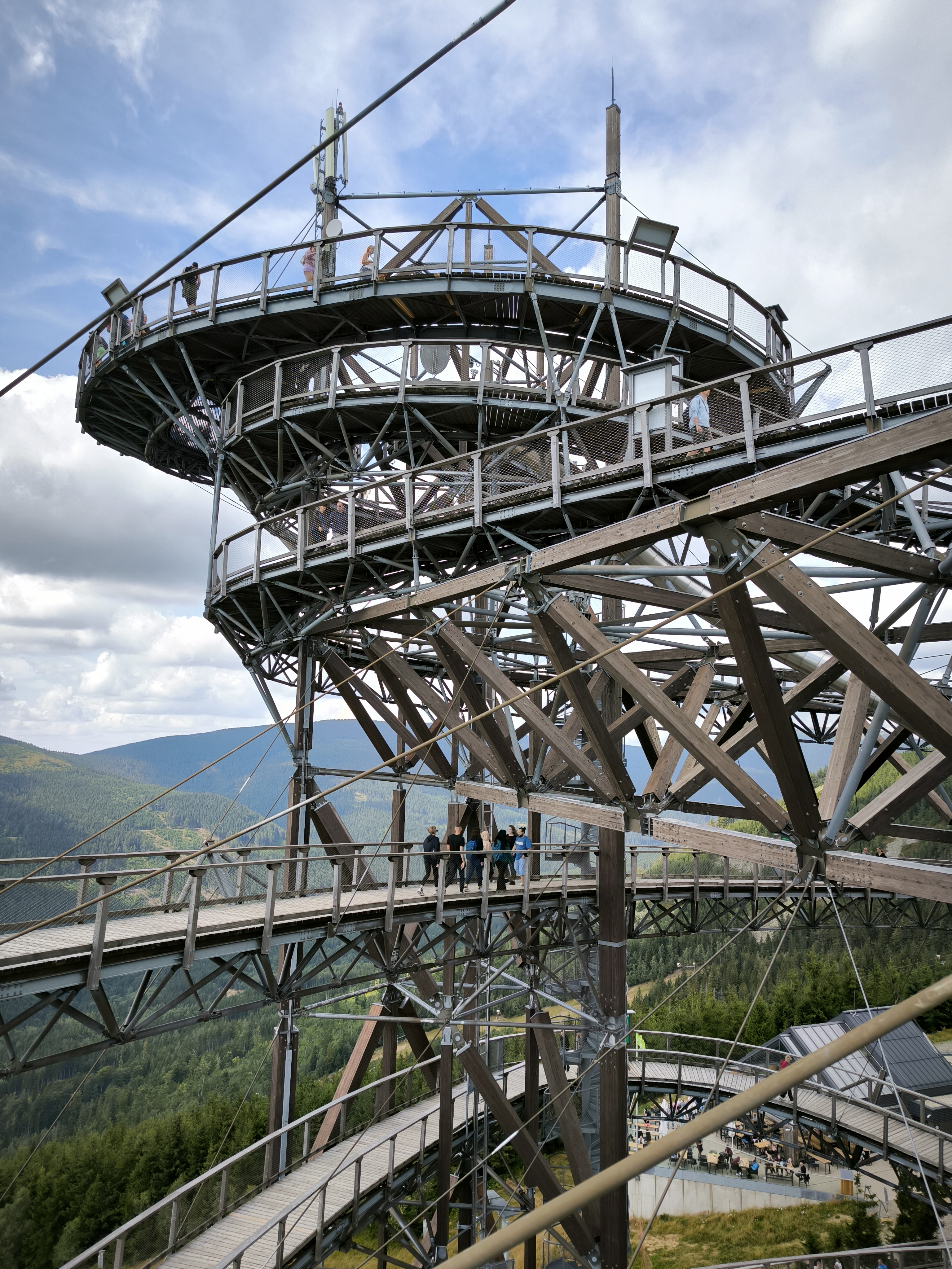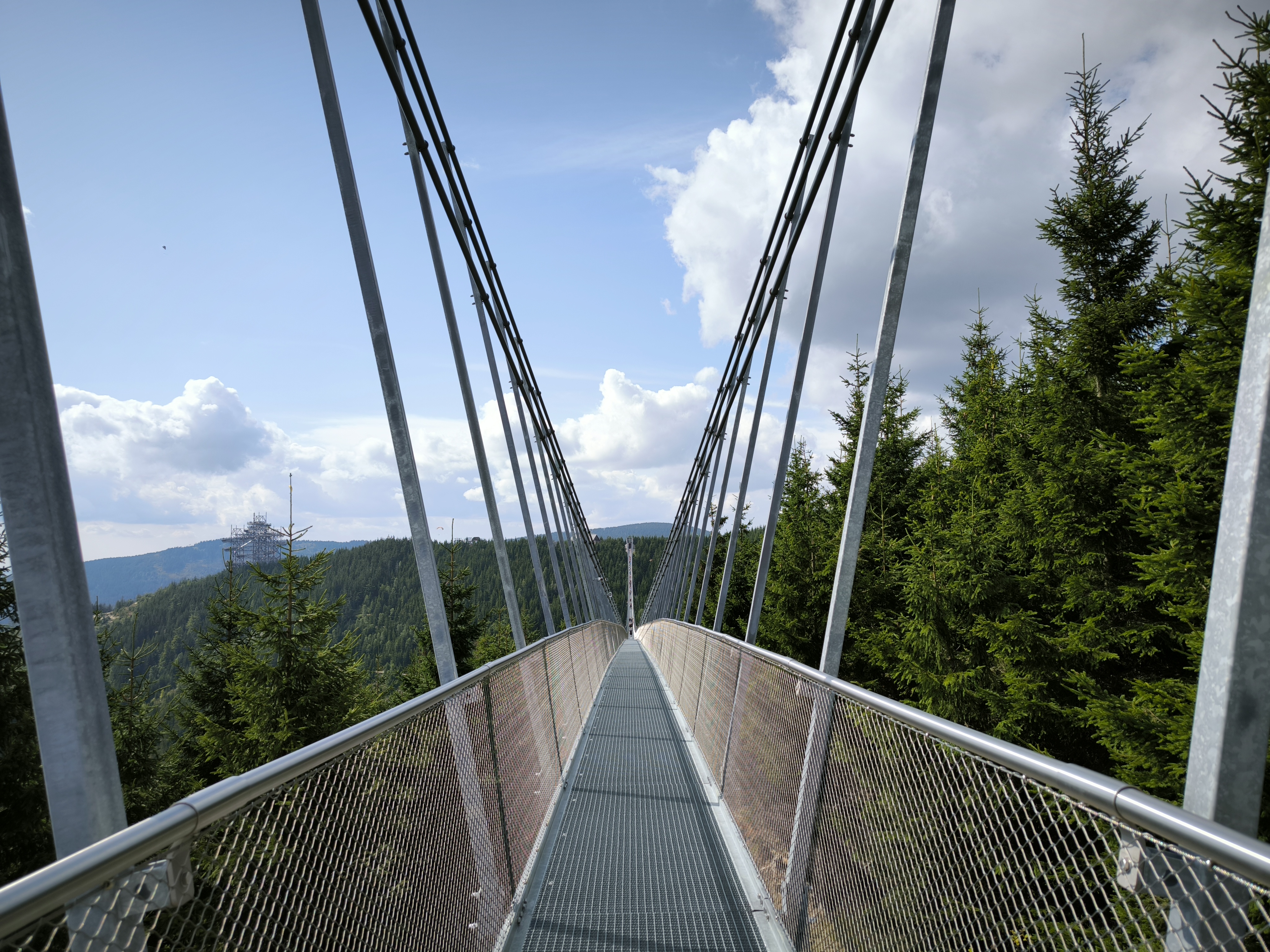 A déli órákban tovább utazunk hazafelé, útközben azonban megnézzük Csehország egyik modern kori turista látványosságát, a világ leghosszabb függőhídját. A hozzávetőlegesen 1110 méter tengerszint feletti magasságban található, 721 méter hosszú, 1,2 m széles „Sky Bridge 721” a legmagasabb ponton 95 méterrel a föld felett keresztezi a Mlýnský potok völgyét.